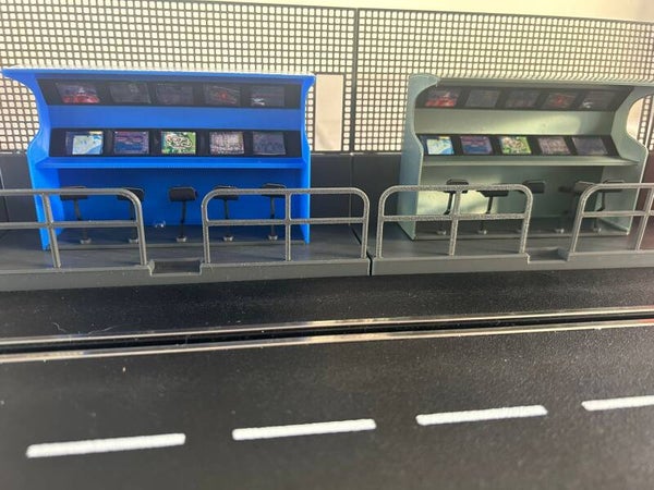 Maak je slot car racebaan compleet met deze prachtige, 3D-geprinte pitwall time booth met hekwerk op schaal 1:32.